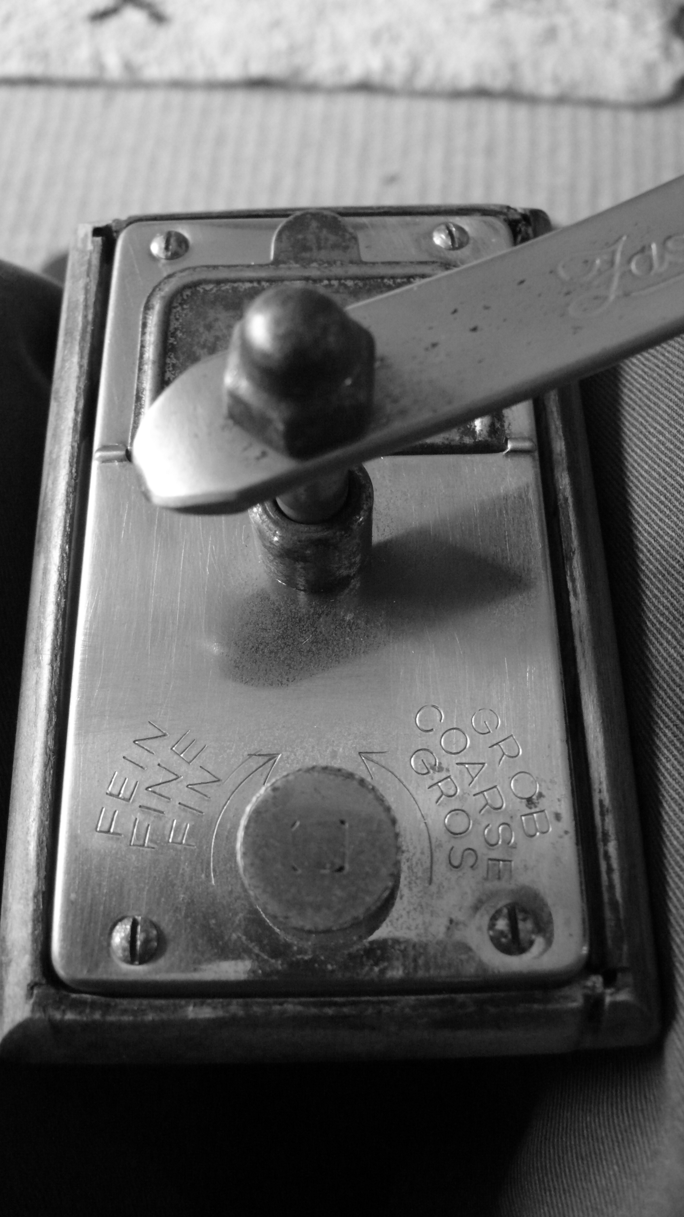It was a bit of a gamble as sometimes these units can lose their tightness and need a bit of work to set-up again. Generally the conical burr does not wear as it is made of hardened steel so there isn’t much to go wrong in the way of parts. Older units are sought after because they are better made (originally made in Germany) than the new off the shelf ‘made in china’ copies of this mid 1870s design. I wanted the ‘knee’ version of these grinders as these are smaller and will be easier to use while camping and travelling (not just a grinder for the home).