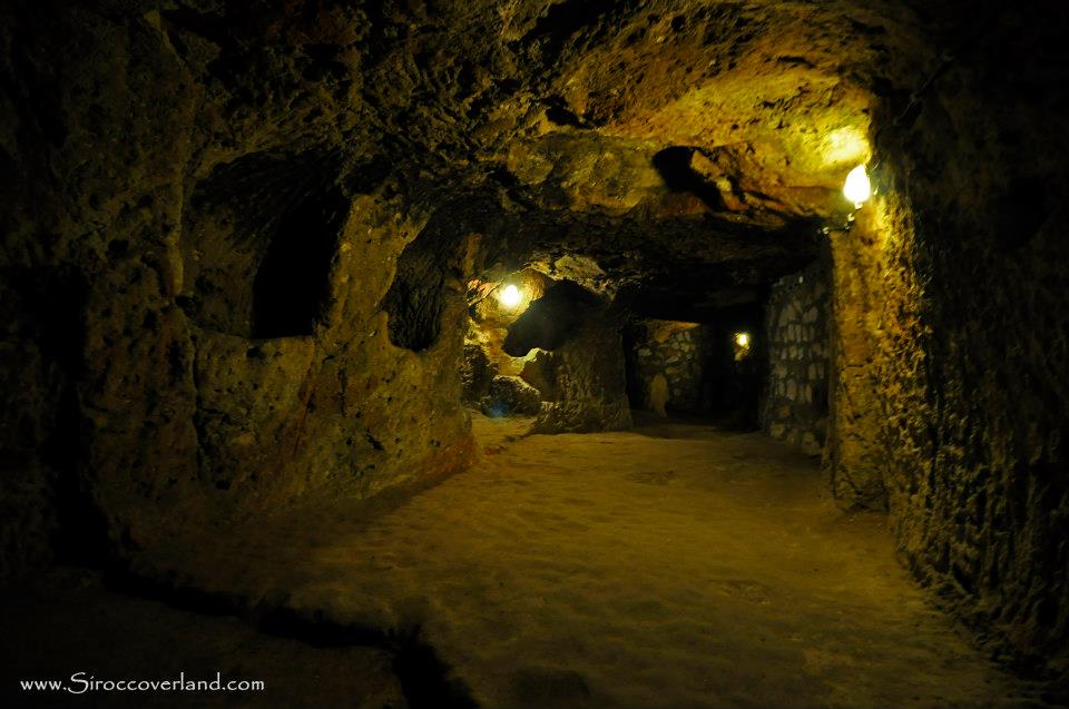 We arrived at the ancient underground city of Derinkuyu expecting it to be rammed full of coach tours but surprisingly there was only one coach there. We joined an English-Australian couple, Brendan and Julia with their two children Rory and Mya for a guided tour of the multi-level complex dating from around the 8th Century BC. The city is roughly 60m deep and was large enough to house over 20,000 people and their livestock, complete with stables, kitchens, wine and oil presses, chapels, wells and ventilation chimneys. In the event of an attack the people living above would find refuge in the city below, using massive stone doors that rolled over tunnel entrances, enabling levels to be closed off separately. Rory even attempted to squeeze past a partially closed door to the unknown tunnel behind, until his imagination got the better of him! We thoroughly enjoyed our poke around after the tour ended, crawling into cramped spaces and walking through tunnels even I had to crouch for!