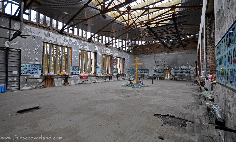 When we got through we drove along the Chechen border for some miles, then headed to the small town of Beslan to visit the memorial of the Beslan School Massacre. It was such a heartbreaking experience. I couldn’t hold back the tears as we walked around the school, which remains as it was after (supposedly) Chechen rebels held over 1100 people hostage in 2004, killing almost 400, over half of them children. Bullet holes litter the ghostly corridors and ominous dark stains are still visible on the gym floor. The photos of the dead line the walls of the gymnasium, and flowers surround the walkways. The families have buried the victims in a nearby cemetery complete with a beautiful and moving monument, the Tree of Grief, dedicated to them. I wish we’d seen it but we were running late and it was upsetting enough already. For those wanting to visit the memorial and pay their respects, it can be found here: N43.18414 E044.54009 There is little info on Google and we had to ask around for it.