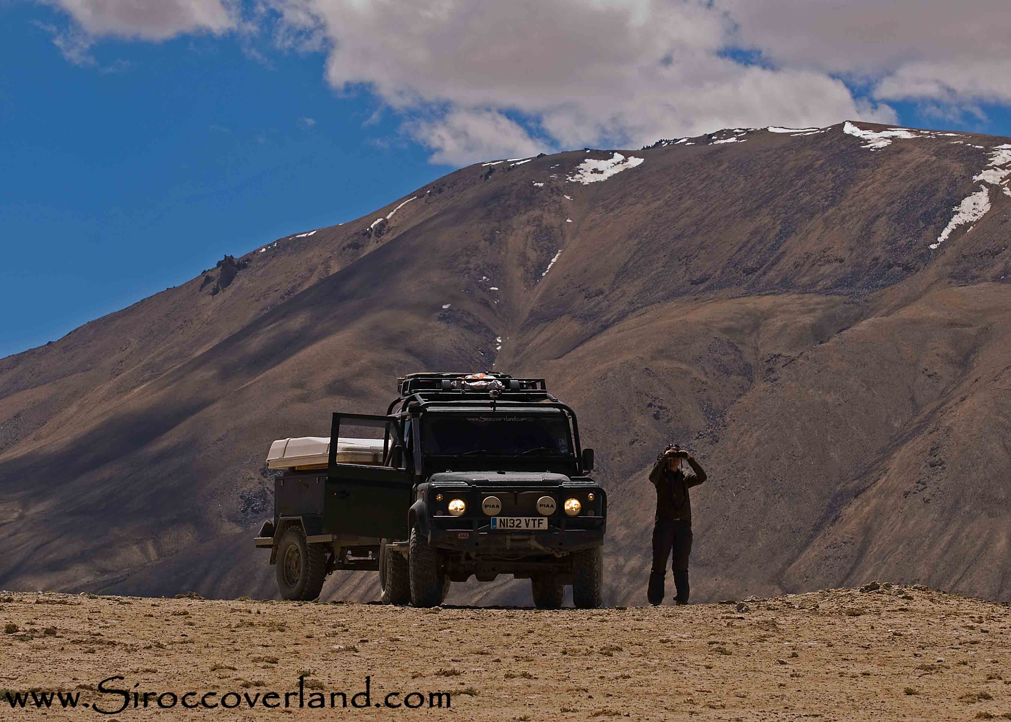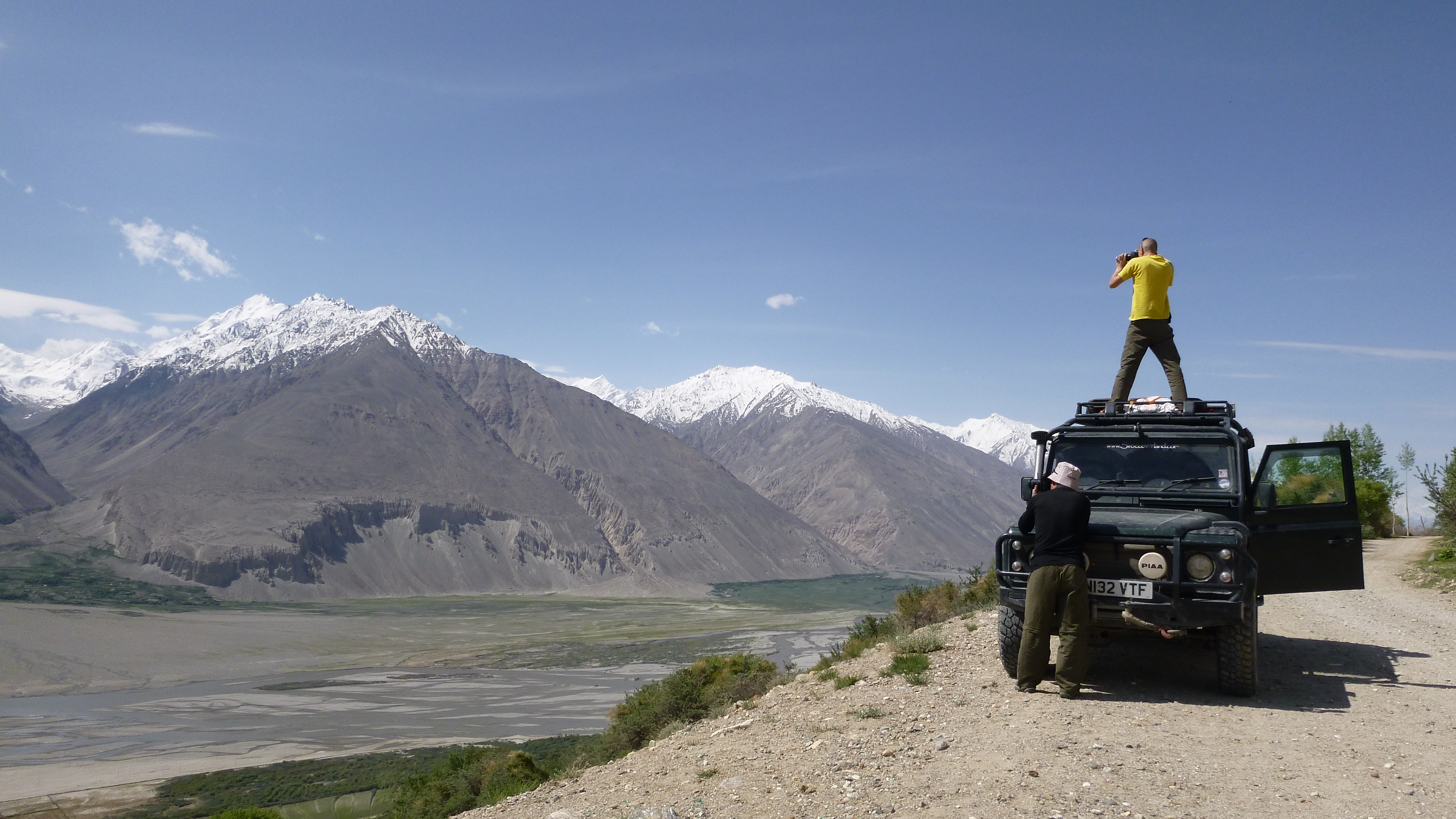 We found a quiet spot next to the lake but the wind was howling and bitterly cold. We sheltered the best we could and cooked up something quickly for the 3 of us before retiring to bed. The next morning we awoke to the sound of a small van, blaring Enrique Inglesias and six Tajik men inflating a small boat and preparing their nets. We got up and made breakfast when they came over and gave us three white fish. Endemic to the two lakes here in the high Pamirs these are something of a delicacy and we were very grateful. It was at this point that we bumped into a Land Rover Discovery! It turned out to be two lads from Sweden on a short trip through Central Asia. (www.swedishdiscovery.com). After a brief discussion on the finer points of Land Rover diesel engines: ‘does yours blow black smoke at this altitude?’, ‘mine didn’t start this morning’ and ‘what is your economy like?’ we were on our way.