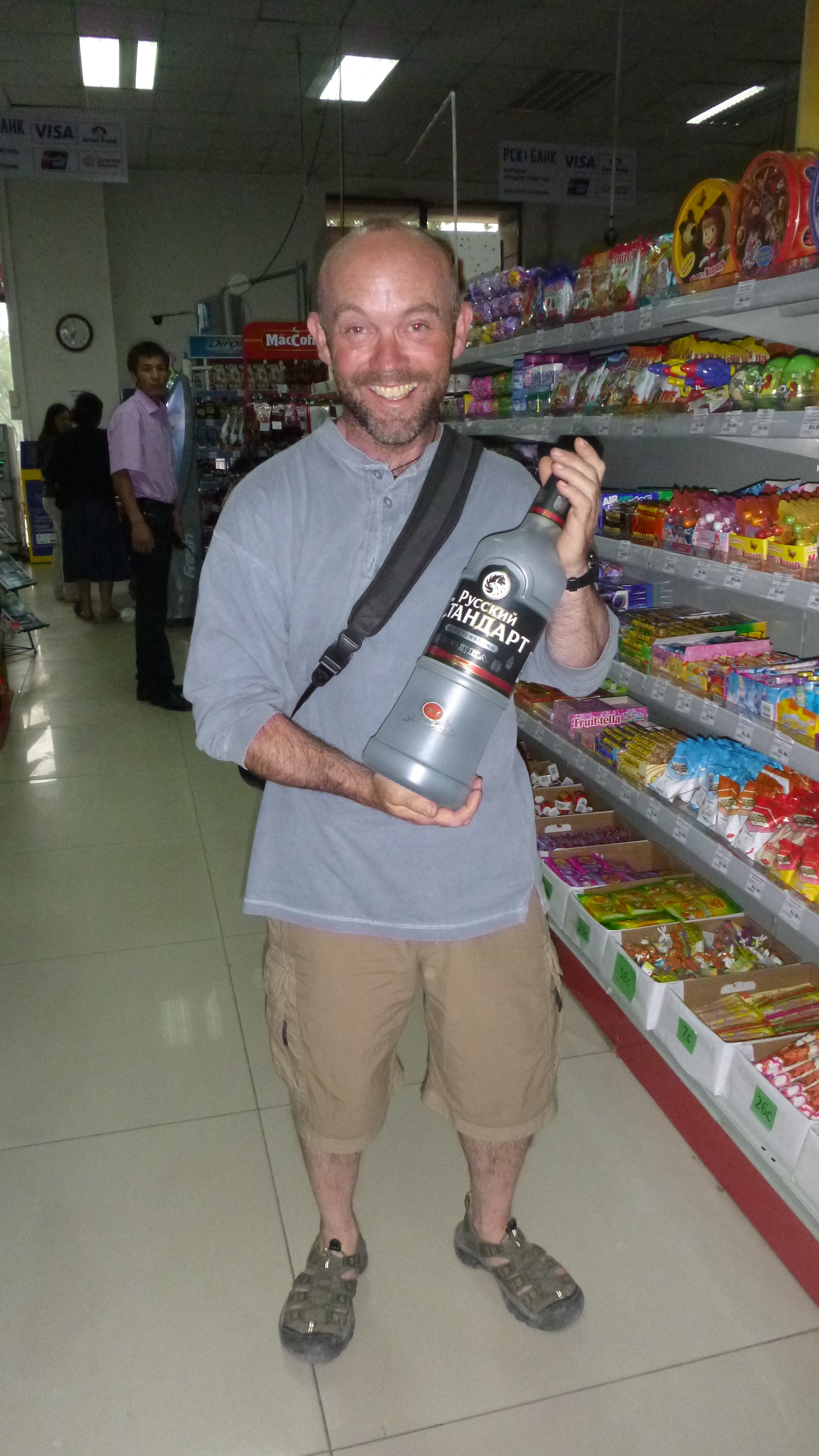While in Bishkek, our social life took off again. We met Karsten from Switzerland, who was overlanding with his ten-year-old son Cedric and hitchhiker Tomo from Japan who was sharing their LandCruiser. Linda, from Holland, was cycling to Beijing from Istanbul. Jurgen, the Norwegian fisherman, had already been there a few weeks and knew the “best” places to go. Hughbert from Austria was also staying. We were reunited with Jon and Boris a couple of days after we arrived, and Vaughan and Kim from UK/Canada/France arrived in their Iveco camper to meet him for the Chinese leg of their journey.