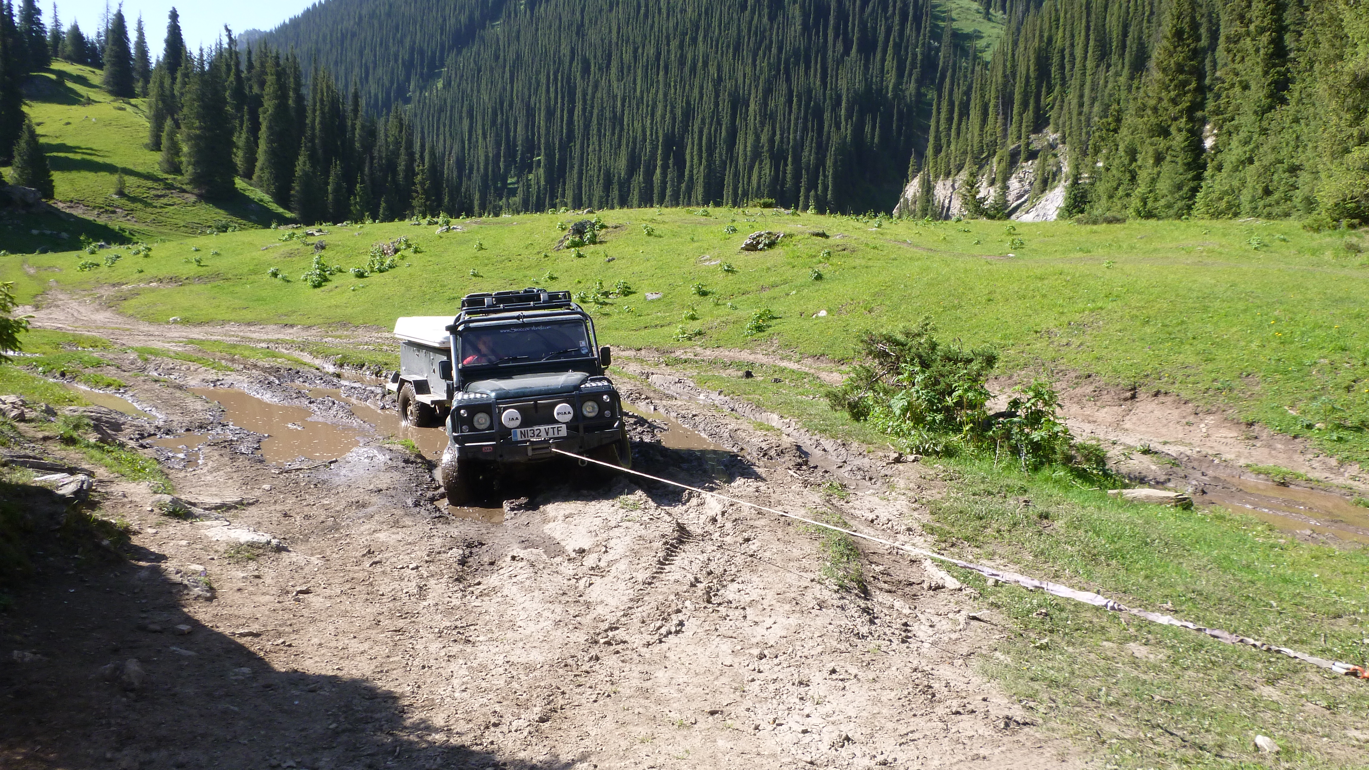 The following day we crawled back down the dicey road to Karakol. On the way down we got stuck in one of the muddy tracks and had to winch off a rock, but other than that it was not as bad as the drive up. Then it was a quick dash for supplies, a trip to the post office to dispatch the aforementioned headtorch, and straight to the border to cross into Kazakhstan.