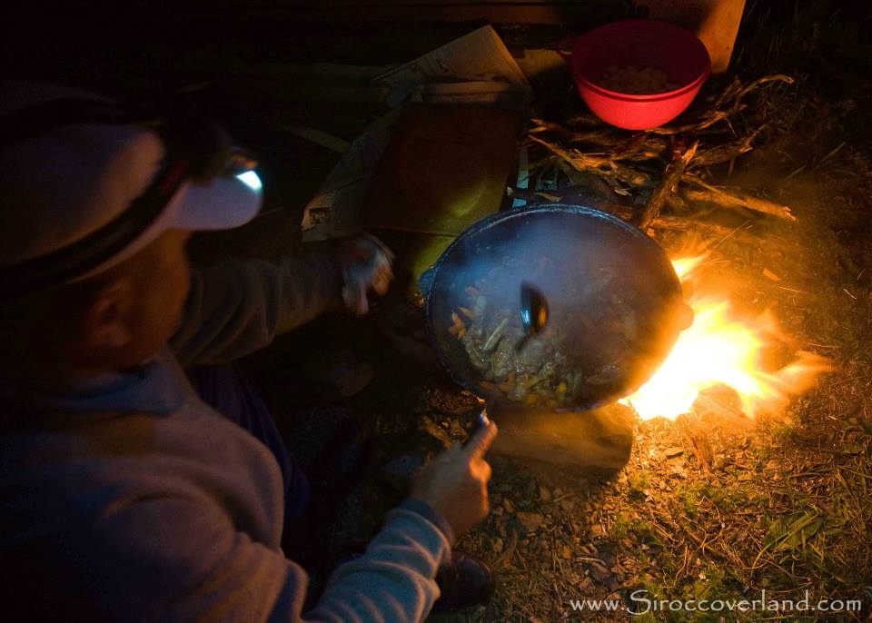 In the meantime a Kazak family turned up to occupy two of the holiday homes and in their Transit van was a sheep. It was led out of the van and down a hill and into the long grass where it returned back up the hill on serving trays. After a few hours sitting under the awning drinking tea in the rain we were invited in. After a few rounds of Vodka and Cognac two of the men started to hack the pieces of lamb apart. No master butchery here, everything was bashed and smashed with all kinds of implements on top of the bedside table. When they had the ‘cuts’ they wanted we went outside, started a fire and started to make some form of Kazak shashlik in a cast iron pot. A few simple veggies thrown in with some tomato paste and herbs and it was done. More Cognac was consumed and in their drunkenness invited us to stay with them in Astana (He was after all, Presidential Security) ‘Sure’ I said whilst endlessly chewing a ball of lamb fat, ‘sounds like a great idea’ it was only 1000km out of our way.