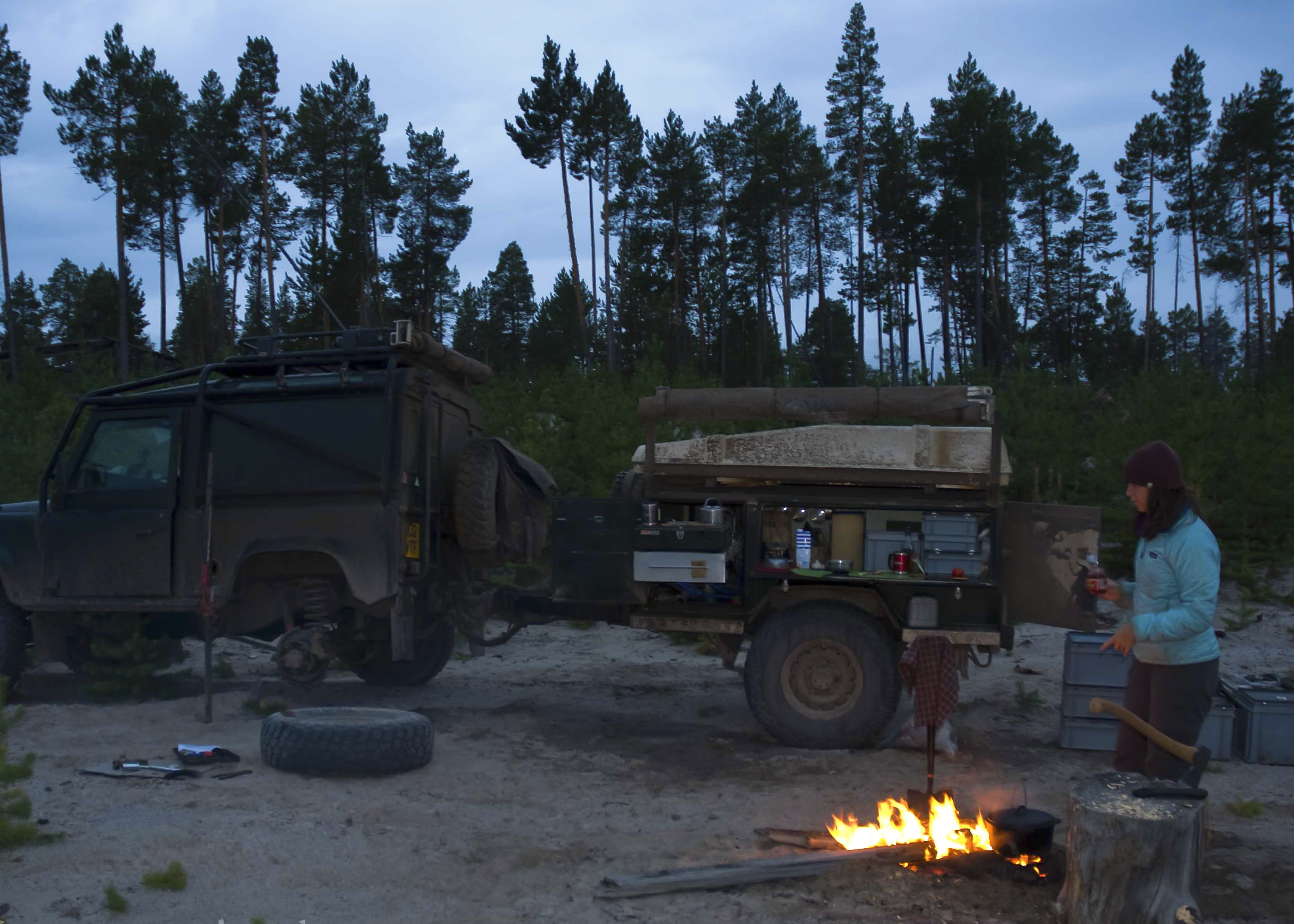 We left the café shortly before sunset ready to find an opening in the forest to wild camp. Mile after mile we drove finding only boggy tracks between the trees. When your Garmin GPS changes over to ‘night colours’ you know that you should be pulling over very soon. As the darkness was enveloping the remaining light we heard an almighty SMASH!!!