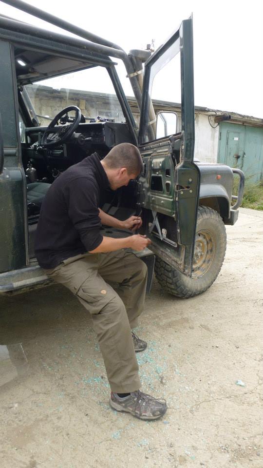 The driver’s side window imploded over Griff; glass shattered everywhere, and all of the window had disappeared. Knowing that this was a little out of the ordinary Griff kept calm (still driving in a straight line) and drove on until we found somewhere appropriate to pull over, checking Griff and the car, in a state of mild shock. What the hell was that?! There were no other vehicles around, very few stones were deflecting off the tyres and the only thing they could possibly ricochet off were trees 20m away. Were the guys on the barge right, had someone just shot at our window? No, Griff would have been injured. Shots from a catapult, local kids playing? We hadn’t seen anyone. Stones kicked up from the wheels seemed unlikely, but the only scenario we were happy to indulge. But still, we were spooked, and as we had no window we couldn’t camp on the side of the road even if we wanted to. Our only choice was to continue to Mirny, and hope that Ilya or Mischa could help us out.