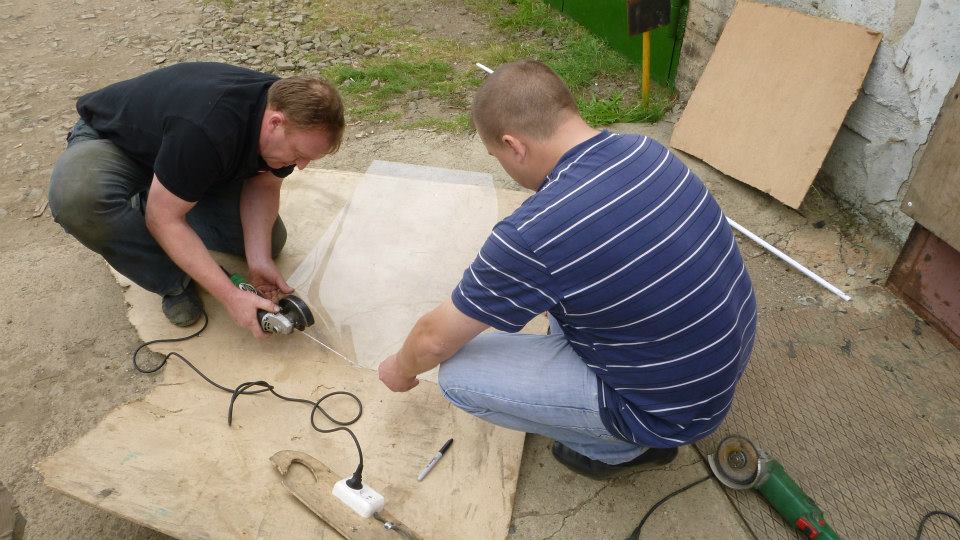 At 2am, shattered (no pun intended) and cold from the new draught, we rolled noisily into the sleeping town where Ilya had agreed to help us. We pulled up outside a hotel, wondering if it was secure enough to leave the car outside, as we desperately needed sleep. While waiting for Ilya to find us, we were approached by the police. Apparently we were parked illegally, and asked to move the car. We obliged, and explained our predicament. They were convinced the only explanation was a stone kicking up from our wheel, which was such a common occurrence, that people often glued second windscreens onto their main one!