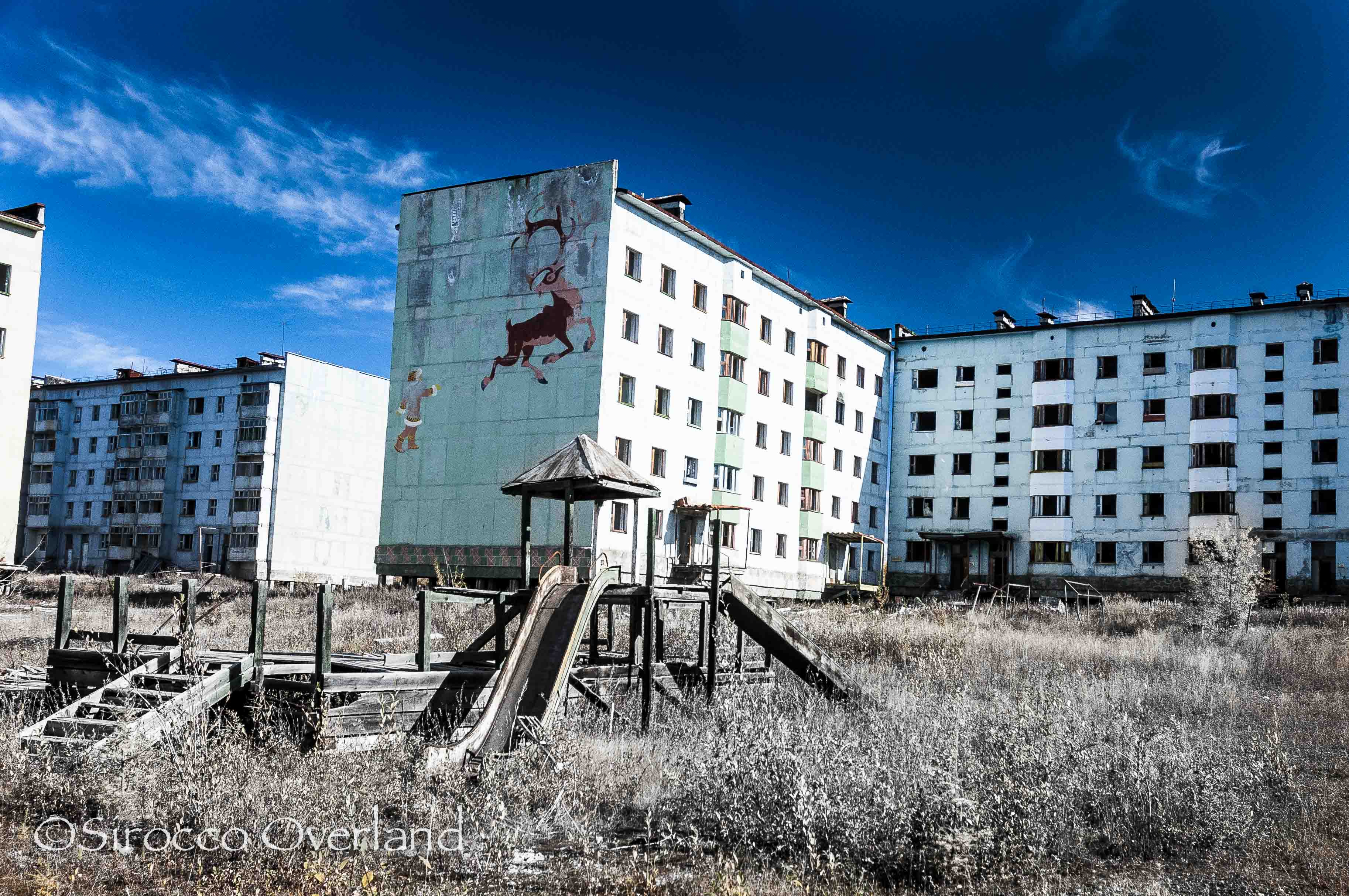 Like the Road of Bones, it was built by gulag prisoners in WWII, and became a booming coal-mining town housing a population of almost 11,000 miners and their families. As the coal became depleted and demand dropped, the population shrank to half in the 1980’s. An explosion at the mine in the mid-90’s sealed it’s fate, and it was closed for good. The residents had few remaining employment prospects. Winters were long and harsh, and supplies were struggling to reach the remaining inhabitants, so an exodus ensued. The Russian military evacuated the town promptly and the government handed subsidies to families to aid in relocation. By 2007 only a couple of hundred people remained, and the town was officially depopulated in 2010. Government buildings, schools, offices, hospitals and housing were all left standing, now overgrown and reclaimed by mother nature.