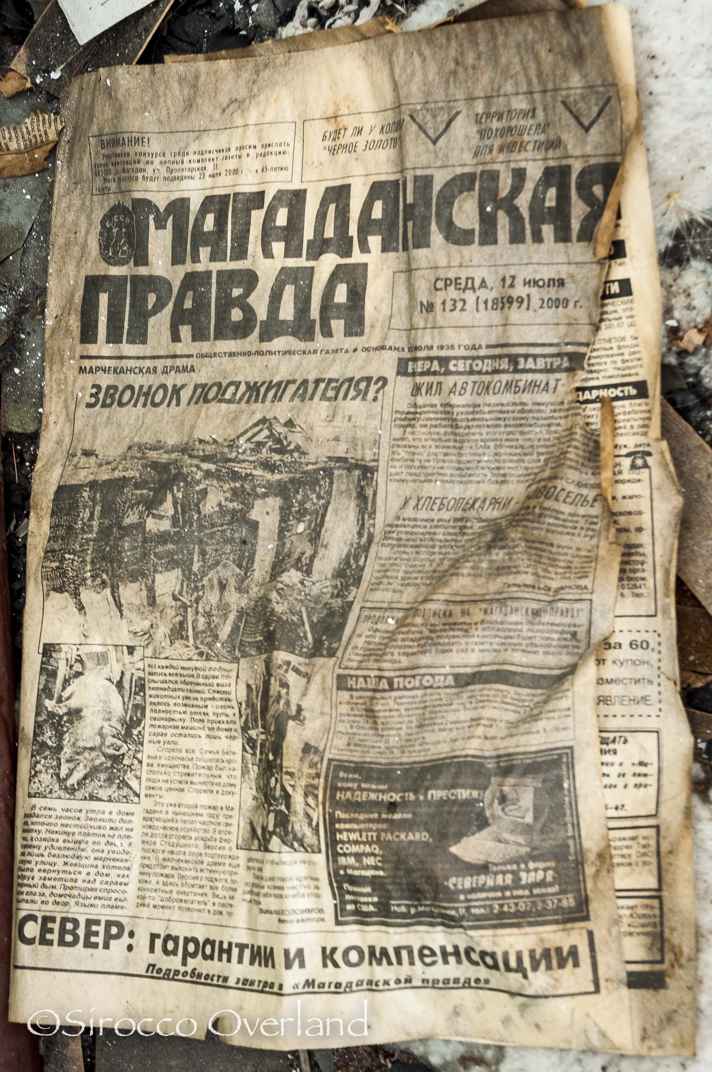 After the swamp lands came the mountainous pass just west of Ust Nera. It was slow going but the road was good. We stopped in Ust Nera to pick up a few basic supplies and top up on diesel, leaving there in the early afternoon. Another riverside camp and another blazing fire that night. The next day we crossed into the Magadan Oblast and another time zone: GMT +12. We worked our way toward Susuman stopping at the forgotten city of Kadykchan, which stands at the other end of the OSR.