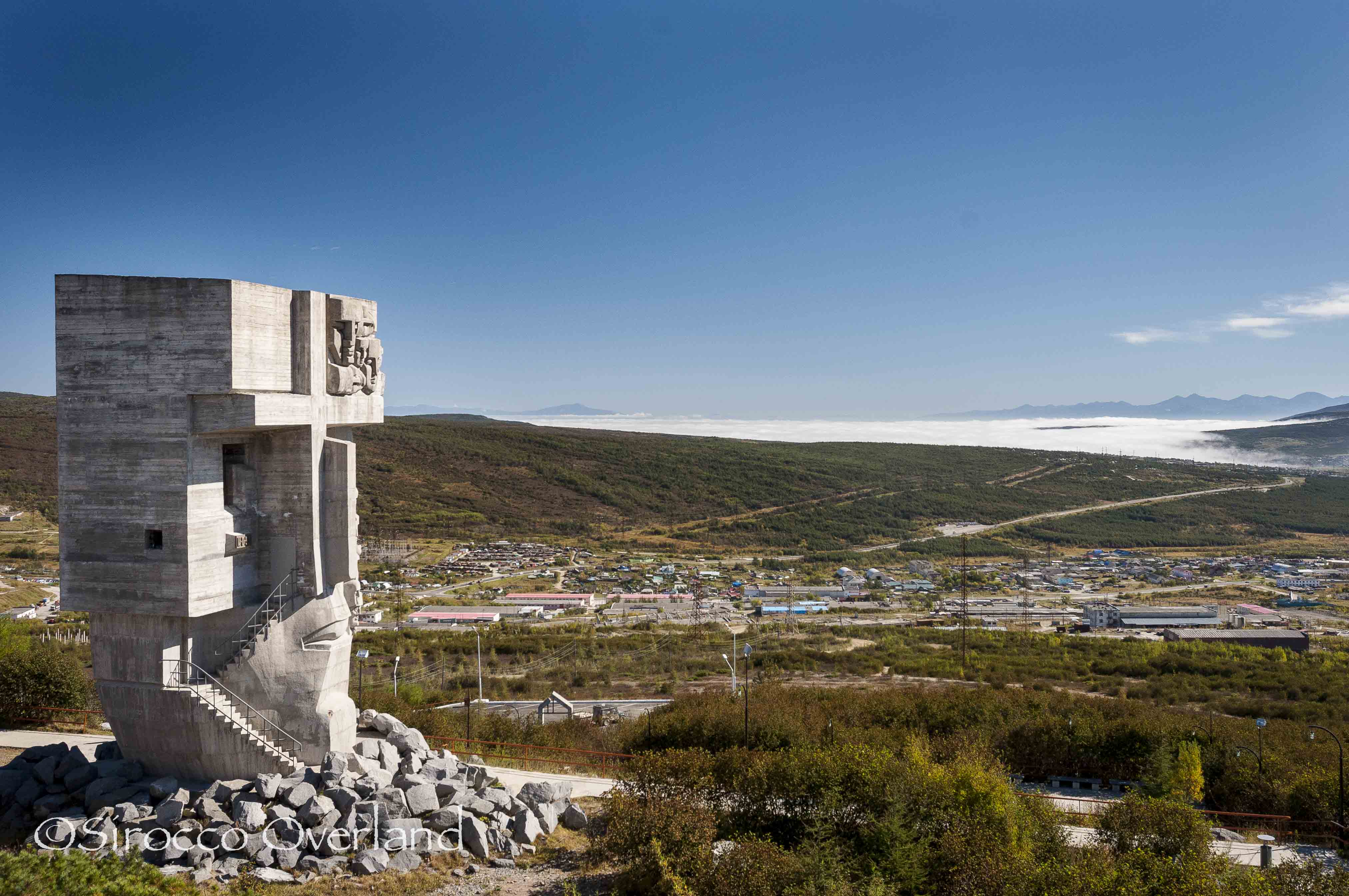After 222 nights on the road we had finally reached Magadan! We stopped on the outskirts of the city for some photos before seeking out the Mask of Sorrow.