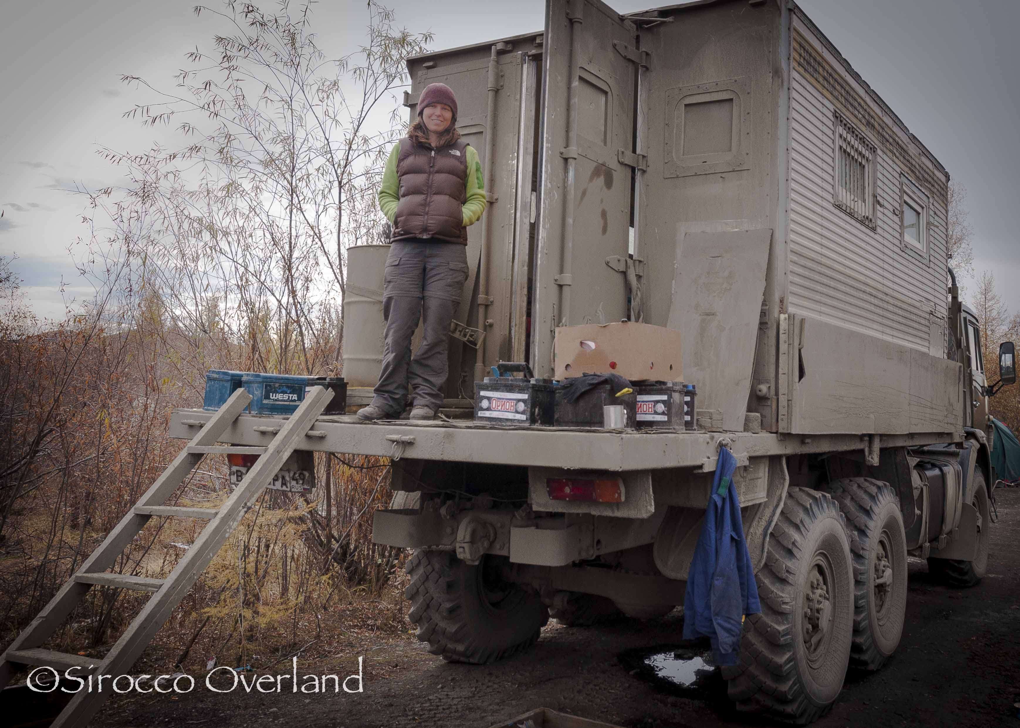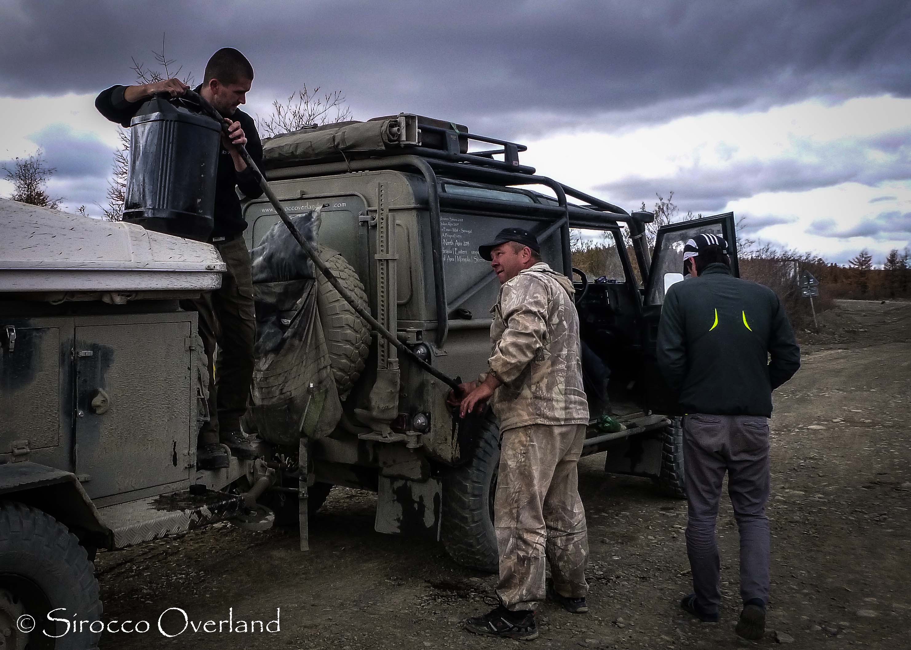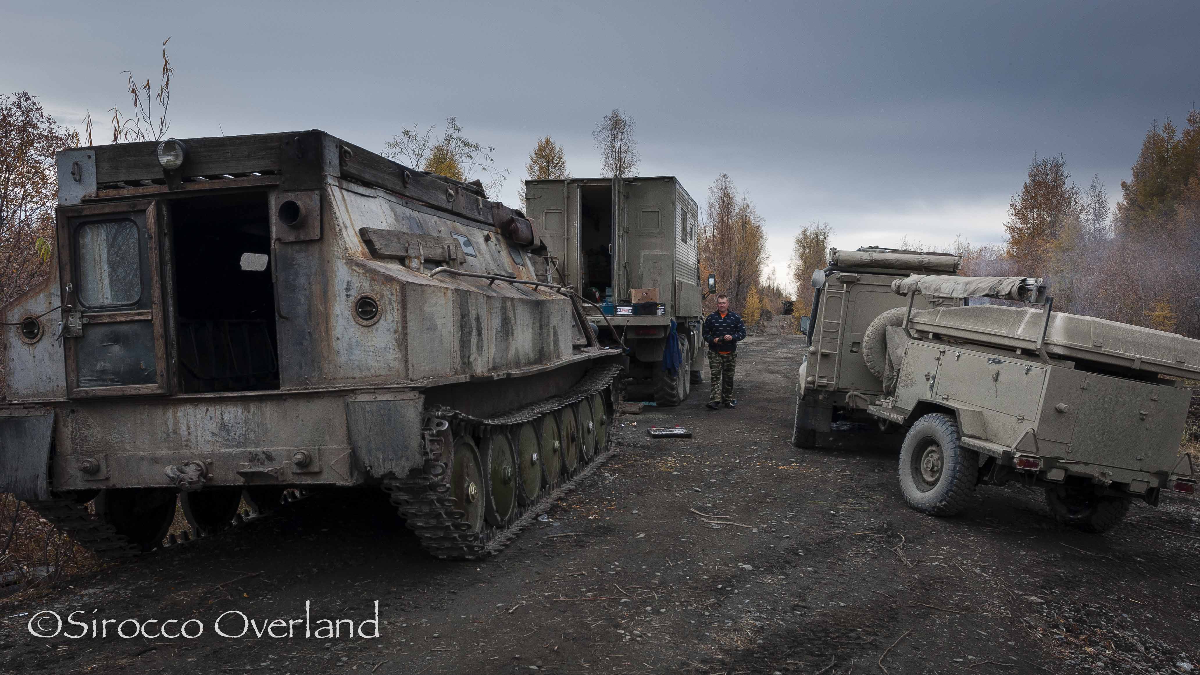 We had a brief look at the Old Summer Road (OSR) where we met some exploration geologists who we spent the day with chatting and eating. They told us lots of stories and showed us plenty of photos of the road ahead… it didn’t look pretty. They were basically rebuilding the road with felled trees. They had four Kamaz trucks, two Gaz 71 tracked amphibious vehicles and over 20 capable men with all the gear. It seemed a bit much for a small 4×4, me and Lisa. They did say we could call them on the Sat phone and they would bring the tracked vehicles to come rescue us! But it was too little too late. A real shame. I think this road is now in the state that only motorbikes can traverse it. It’s no longer the place for a 4×4 as most of the old road is now washed out making road rebuilding a necessity. At the time we thought we may still get to Tomtor from the other end but after waiting over 24 hours at the Kyubeme fuel stop for diesel to arrive we decided that we better push on. We bought 40 litres from the construction workers we met earlier in the week which was enough to get us a further 400km to the next fuel stop.