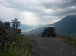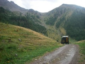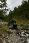 After a good night sleep in our Maggiolina roof tent we drove into the old town for a look around, Briancon is the 2nd highest City in Europe and has many churches and a cathedral within the fortified old town high on a mountainside. After a quick re-supply we set off to look at a piste northeast of Briancon which looked closed. Rather than risk it we heading down the main road toward the south, we then took another mountain road which traversed the eastside of the valley. An excellent introduction to how alpine pistes would be from now on. The end of the piste brought us back down to the main road which we followed to end our day at Guillestre. With the follow days aim of traversing another piste toward Embrun followed by passing the Col de Parpillion we set off early toward the Col de Vars before coming off the road to take the 1st piste. An excellent drive through alpine forests and across open ski pistes toward the mountain top. As we reached the Col, the sky darkened, a flash of lightning and a clap of thunder immediately followed by a belting hail storm. Straddling both valleys at the crest of the mountain ridge, we had to make a quick decision to turn back or press on. Distances to safe points were equal and the clouds surrounded us showed no openings of hope. I made the decision to press on. We descended down the piste slowly and the rainwater flowed down our path like a river.