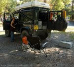 and made up some sandwiches, in which time 2 vehicles from Luxemburg arrived (110 Puma & 70 series) who after a brief chat showed us some more drivable routes further north which is where we would be toward the end of the trip. We left them to their beers and proceeded into the tunnel. Cold but not so dark with 240w of spotlight shining through, windows down you could feel the icy cold air, it was to much, windows up. A slow drive through savouring the moment. Sections of the tunnel had collapsed in previous years exposing bare bedrock, while groundwater seeped through leaving large puddles on the surface. Before we knew it there was “light at the end of the tunnel” and we were back out onto mountain piste. A narrow twisting passage down the mountain onto sealed roads past Fort Tournoux and onto the mainroad south to Jausiers. We camped here for the night, bathing in the warm evening sun as we cooked our evening meal.
