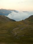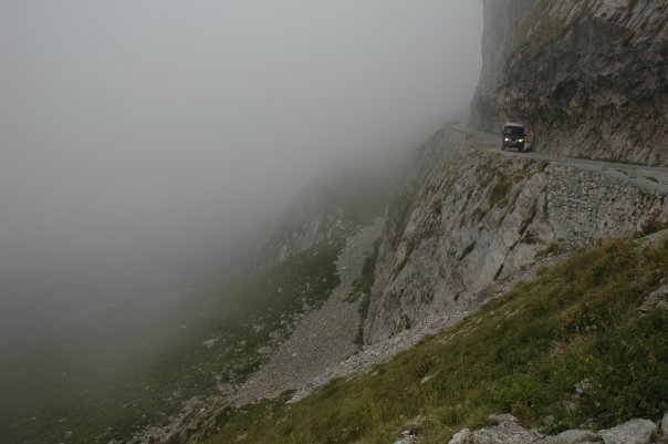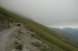 It was clear quite early on in the day that we were unlikely to finish at a campsite so we looked at the options of a refuge on our chosen piste toward Mount Saccarello. Passing 2 of these (which looks closed/shut down) at around 2pm we decided to press on, we were making good progress and topped Mount Saccarello as the cloud came in making navigation without the GPS almost impossible. A few photos at the top we made a rapid descent back below the cloud and pressed on with our route north. As the evening went on the cloud came back and made for some surreal high altitude driving. With approximately 50m visibility of the track ahead, the shear drop off the sides was now just a blank wall of cold grey cloud. It was testing times. Stopping a few times for photos and a rest bite we were oblivious to the refuge we were seeking being only 100’s of meters in front of us, just down off the main piste.