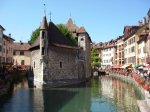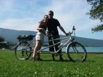 Quickly crossing the Col de l Iseran ( the only snowcapped Col encountered) we dropped into Val-d’Isere heading north/northwest on the N90 for Moutiers, Albertville and eventually taking the road west around Lake Annecy. We found the camping municipal after getting lost in the city and stuck down a 1 way street which was heading for a multistory carpark at 1.90m high! We spent 3 nights here and thoroughly enjoyed ourselves relaxing by the lake and in the town. Hiring a boat and a tandem we made the most of what little time we had left in this beautifully mountainous region of Europe.