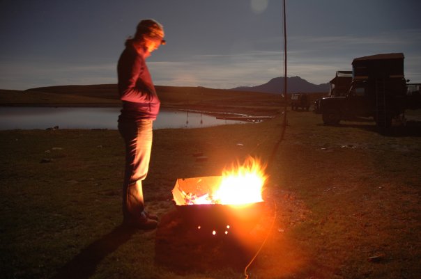 As the sun was setting behind us we heading on East across the Asseti Crest over the Colle Bourget (2299m) and Colle Blegier (2390m) in the hope of taking the track down to Susa. We stopped many times for photos as the evening sun made for some excellent landscape photography. We spotted tracks to a long derelict farmhouse and decided the worst case was a wild camp sheltered behind those structures at 2500m. We travelled on hoping to complete the piste, but it grew ever darker. Passing another old stonewalled hut we caught sight of 3 other overlanders who had made camp. We gave them a wave and pressed on. Meeting at a crossroads with a local, we shared no common language, but managed to convey that there were only 2 ways off the mountain. 1 was the way we had just come; the other was not into Susa but back into the original valley. Disappointing. We turned around and headed back towards the overlanders who turned out to be German and provided a warm welcome along with some local knowledge. We were soon told the piste to Susa was closed for road works and that they were some of the last vehicles through. They were on their way to Sestriere but got held up by excavators and groundworks contractors along the route. A quick tin of Stag chilli and rice was on order and we went off to collect what little firewood we could find. In the cold the stock of wood burnt out rather quick so it was time to head for the roof tent and 3 season sleeping bags.