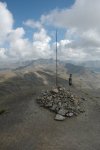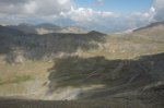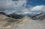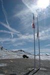 After lunch a group of bikers came down off the mountain as we set off again and we soon passed a pair of mountain bikers that had been slowly caught up with and overtaken us. The group of hairpins immediately after the refuge were so tight, we had to shunt the 90 once on nearly everyone of them. There must have been 10 or 12 of these, I lost count, but shunting on a piste this tight on such a gradient requires a lot of concentration. Soon the track opens out into a plateau as you traverse north to yet more hairpins and the final accent on Mt. Sommelier. As one of the highest mountains around it is very windy on top and cold. We put on our windstopper softshell jackets and headed out toward the glacier through some snow. It was an excellent place to be. After a few photos, the exposure was getting a bit much. Lisa headed for the car while I took a few more shots.