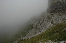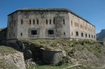 Bright sunshine but bitterly cold we left the refuge heading back west along the piste toward the Col du Tende, the ultimate destination on this stretch of unsealed road. Some hairy driving followed by some even hairier German bikers we arrived at the Fort General and parked up for a look around. We then drove to the very top where an even bigger more fortified gun emplacement stood. After wondering around its impenetrable walls and dry moat, I found a place to climb in through a narrow window. Calling Lisa and helping her up, we were in and exploring each room and walkway of the 3 storey’s. On climbing out we spotted an Eagle as it dropped in for the kill. It isn’t called the “Fortress of the Eagles” for nothing. Driving on down to Fort Maguire which is lower in altitude and further west, I went inside for another quick look before departing and starting our descent into Tende. We were now back in France and the descent took longer than expected.