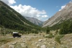 Rather than retrace our steps, the next morning we left the Germans to their coffee and headed on northeast for a look ourselves. We continued along the piste and then took a short road south to pickup the main road back to Sestriere where we stopped in a small café/bar for some espresso and patisseries. Fuelled up we headed north towards Bardonecchia and Mt. Sommelier. Now the highest accessible point by 4×4 in Europe (after Pica de Veulta in Spain which is now closed) at exactly 3000m the road ends at the Italian/French border adjacent to a lake and the Sommelier Glacier. We arrived in Barbonechette to stock up on supplies and were soon heading north on a tiny switchback hairpin road toward Sommelier. Once on the piste, we felt at home and stopping at the refuge for some lunch, it seemed nobody was around.