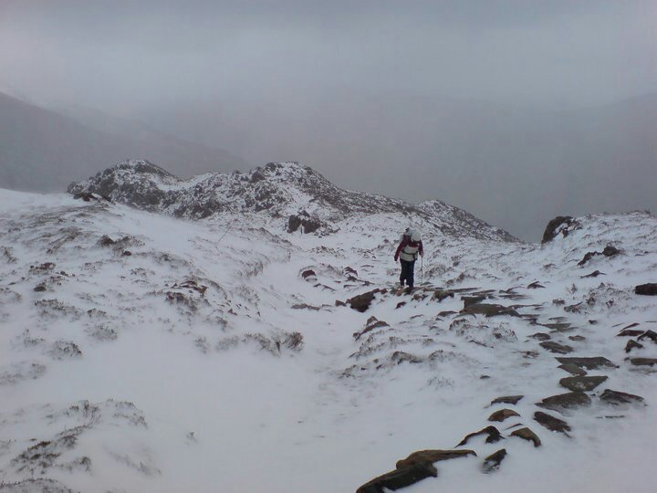 Mixed in with our 4×4 plans was a walk up Cadair Idris and Snowdon. Even though it was spring, recent weather had brought the snowline down to 600m. We didn’t know the mountain particularly well, but we pressed on anyway. This photo is of Lisa on the south side of the cwm about 1 hour from the summit.