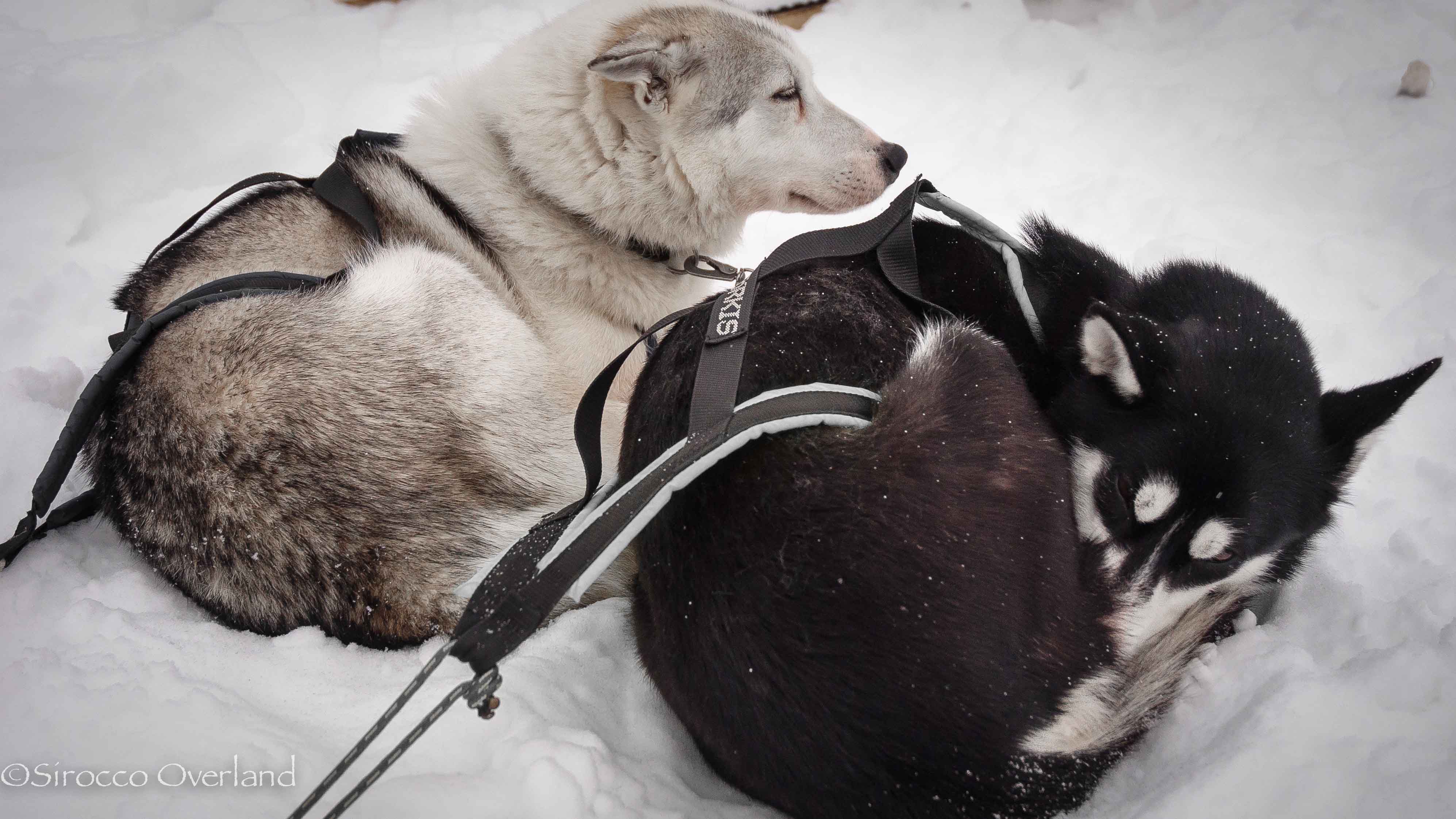 Huskies at Rest and keeping warm during our sledding activities last winter in Arctic Finland.